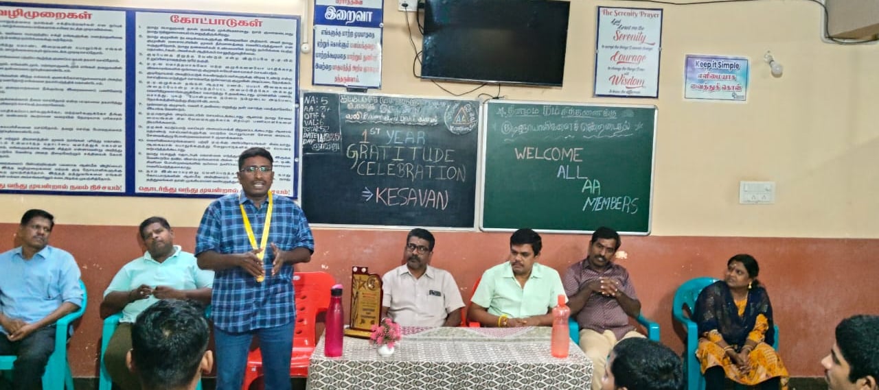 கேசவன் அவர்கள், கடந்த ஒரு ஆண்டில் தன்னைத் தானே புரிந்துகொண்டு, பொறுமை மற்றும் ஒழுக்கத்துடன் வாழ்க்கையை புதிய பாதையில் வழிநடத்திக் கொண்டிருக்கிறார். சவால்கள் வந்த போதும் AA கூட்டங்கள், சக உறுப்பினர்களின் ஆதரவு மற்றும் தனது உறுதியான மனநிலையின் மூலம் அவர் தொடர்ந்து முன்னேறினார். இன்று அவர் தன்னுடைய அனுபவங்களைப் பகிர்ந்து, மற்றவர்களுக்கும் “மாற்றம் சாத்தியம்” என்ற நம்பிக்கையை விதைத்து வருகிறார். அவரது இந்த பயணம் பலருக்கான வழிகாட்டி ஒளியாகத் திகழ்கிறது.